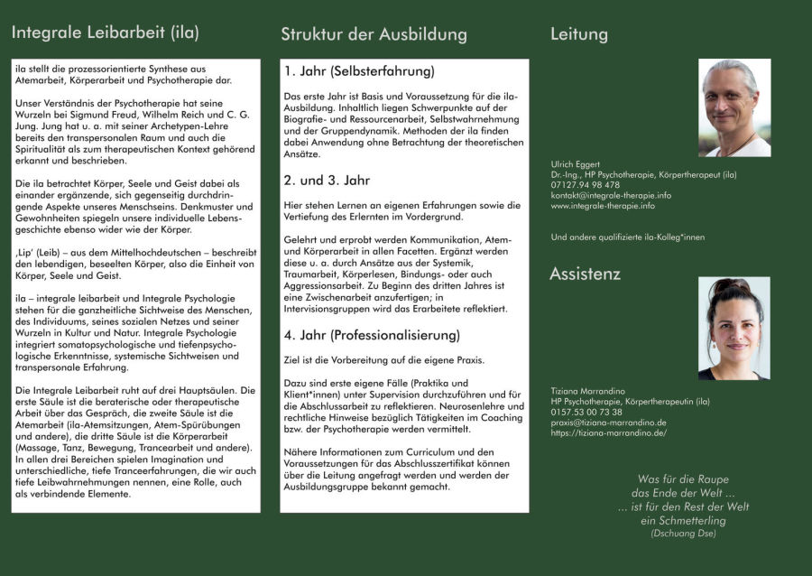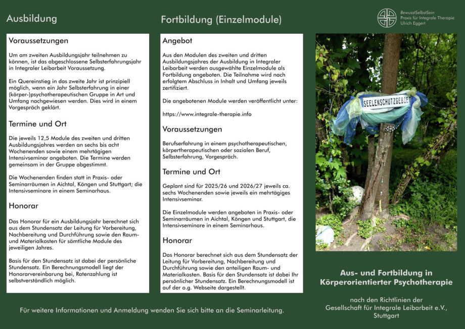 Angebote zur Aus- und Weiterbildung nach den Richtlinien der Gesellschaft für Integrale Leibarbeit